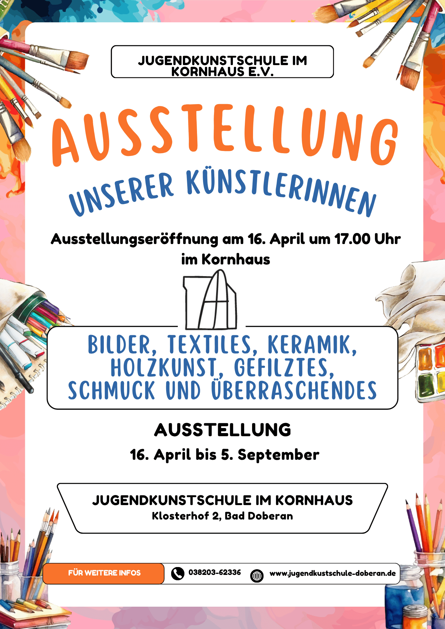 Jugendkunstschule Bad Doberan im Kornhaus, 18209 Bad Doberan, Klosterhof 2 | Tel.: 038203 62336, info@jugendkunstschule-doberan.de